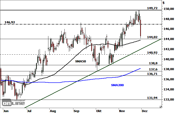 Die Aktie des US-Konsumgüterkonzerns Procter & Gamble (WKN: 852062) bewegt sich in einem intakten langfristigen Aufwärtstrend. Eine mehrmonatige Korrekturphase hatte sie vom im November 2020 bei 146,92 USD markierten Rekordhoch bis auf ein im März verzeichnetes Tief bei 121,54 USD zurückgeschickt. Seither dominieren wieder die Bullen das übergeordnete Kursgeschehen. Nachdem die hartnäckige Hürde des Rekordhochs im vergangenen Monat überwunden wurde, konnte sich die Aktie bis auf eine neue Bestmarke bei 149,72 USD hinaufschrauben. Dort erschöpfte sich jedoch bereits der Kaufdruck. Mit dem gestrigen Kursrutsch sackte der Wert wieder deutlich unter die alte Widerstandszone bei 147 USD ab und markierte ein 3-Wochen-Tief. Im charttechnischen Fokus stehen nun potenzielle Auffangbereiche bei 143,76-144,26 USD, 142,97-143,07 USD und aktuell 142,06 USD (mehrmonatige Aufwärtstrendlinie). Solange die letztgenannte Unterstützung nicht nachhaltig unterboten wird, bleiben die Chancen auf eine zeitnahe Fortsetzung des dominanten Aufwärtstrends erhalten. Darunter wäre hingegen eine ausgeprägte (mittelfristige) Korrekturphase zu unterstellen mit nächsten möglichen Zielen bei 140,92 USD und 137,60-138,95 USD. Ein Wiederanstieg über den aktuellen Widerstandsbereich bei 146,66-147,23 USD per Tagesschluss würde ein erstes prozyklisches Entspannungssignal für die Bullen senden. Ein prozyklisches Anschlusskaufsignal entstünde mit der nachhaltigen Herausnahme der Hürde bei 149,72/149,85 USD. Potenzielle nächste Ziele ließen sich im Erfolgsfall bei 150,91 USD und 153,18-153,82 USD ausmachen.