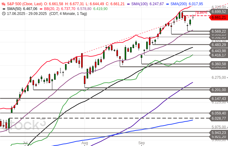 Der S&P 500 konnte sich vom am Donnerstag bei 6.569 Punkten verzeichneten Korrekturtief erholen und markierte gestern ein 4-Tages-Hoch bei 6.677 Punkten.